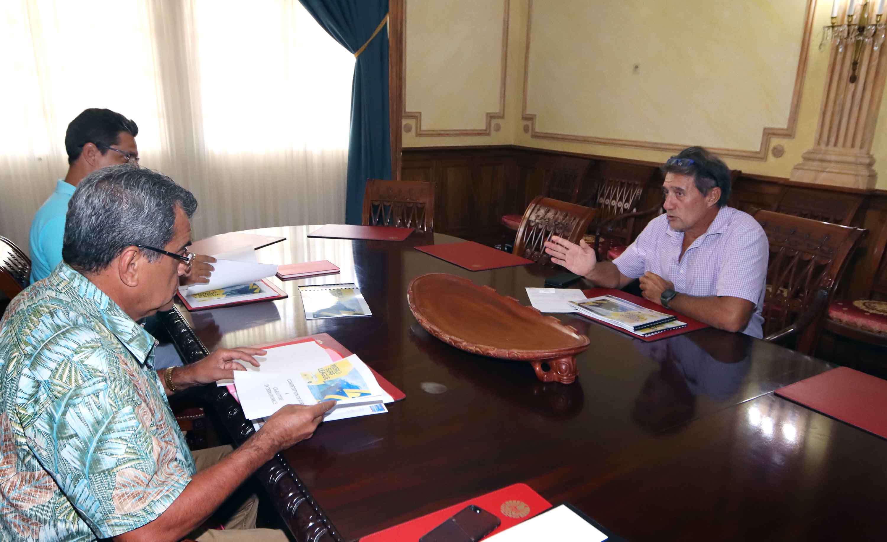 Après plus de deux ans d’interruption due à la pandémie de Covid-19, la passe de Hava’e à Teahupoo accueillera cette année la dixième étape du World Championship Tour (WCT) de surf, du 10 au 20 août. Le président de la Polynésie française et son ministre des Sports ont reçu jeudi Pascal Luciani, référent local de la World Surf League (WSL) pour l’organisation de la Tahiti Pro. Cette année, la compétition verra en outre le retour sur le spot mythique de Teahupoo des douze meilleures surfeuses mondiales après 16 ans d’absence.