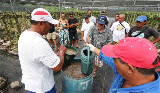 Enfin, la connaissance des besoins de la vanille est essentielle pour optimiser la production, c’est pourquoi de nouvelles formules de fertilisants organiques à base de fiente de poule et de déchets de poissons ont été élaborées et seront commercialisées par l’établissement Vanille de Tahiti. Des lianes bien nourries sont plus résistantes, produisent des gousses en plus grand nombre, de plus grandes tailles et mieux remplies.
