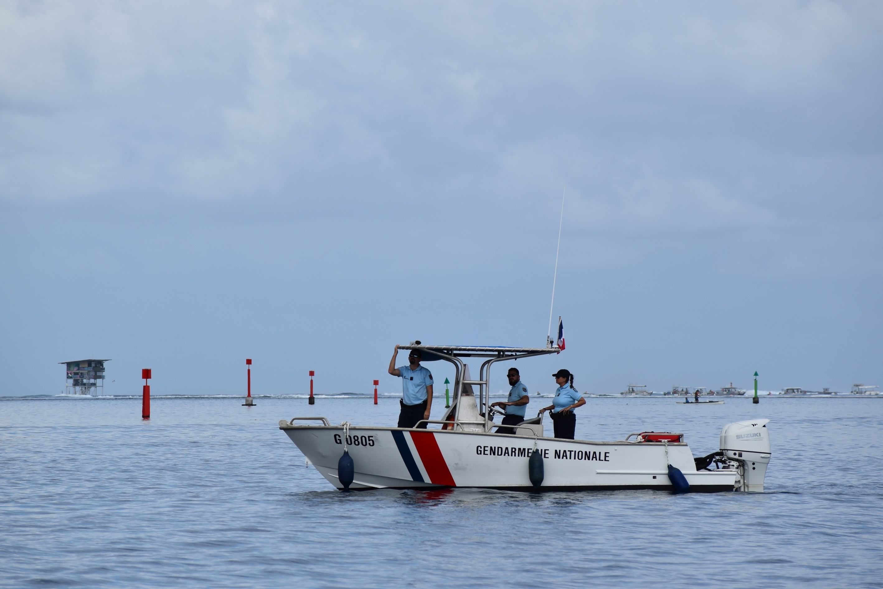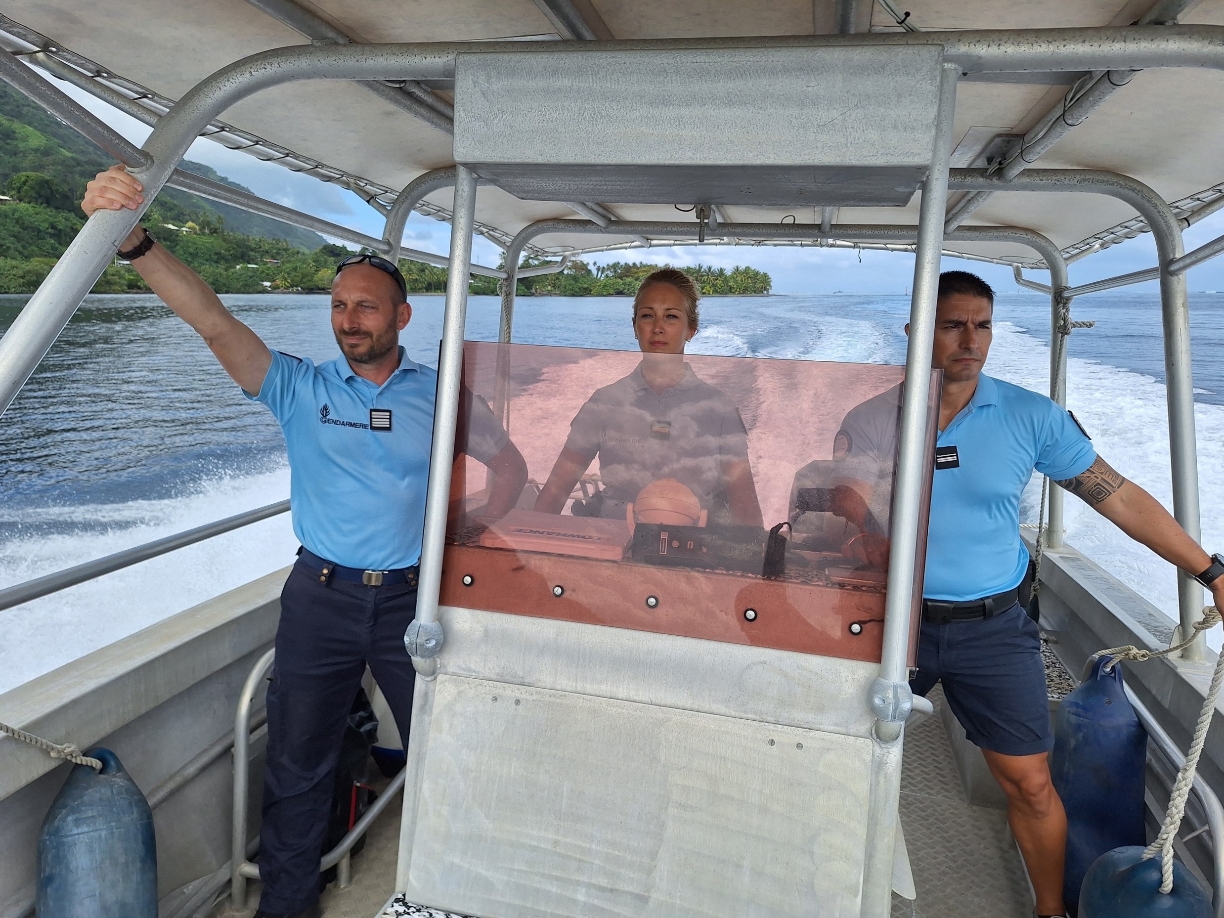 Si l’on a beaucoup parlé de la présence des forces de l’ordre sur les routes, notamment au point de filtrage de la mairie de Teahupo’o, elles sont aussi mobilisées sur le lagon. Dans le cadre des épreuves de surf des Jeux olympiques de Paris 2024, la gendarmerie nationale a pris ses quartiers à l’Ifremer de Vairao, où elle a établi un poste de commandement associé à une base nautique.