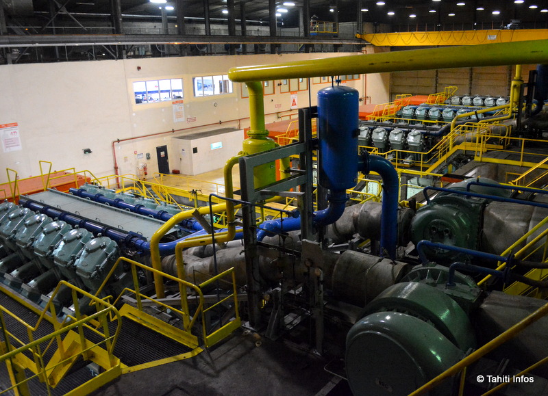 La centrale Émile Martin de la Punaruu ressemble, vue de l'intérieur, à une cathédrale de l'âge industriel. Dans un hangar haut comme un immeuble, huit générateurs au fioul, immenses, chacun de la taille d'une maison, alimentent les foyers et entreprises de Tahiti en électricité. Les cheminées gigantesques, comme des clochers dominant la zone industrielle, soufflent à chaque heure du jour et de la nuit.