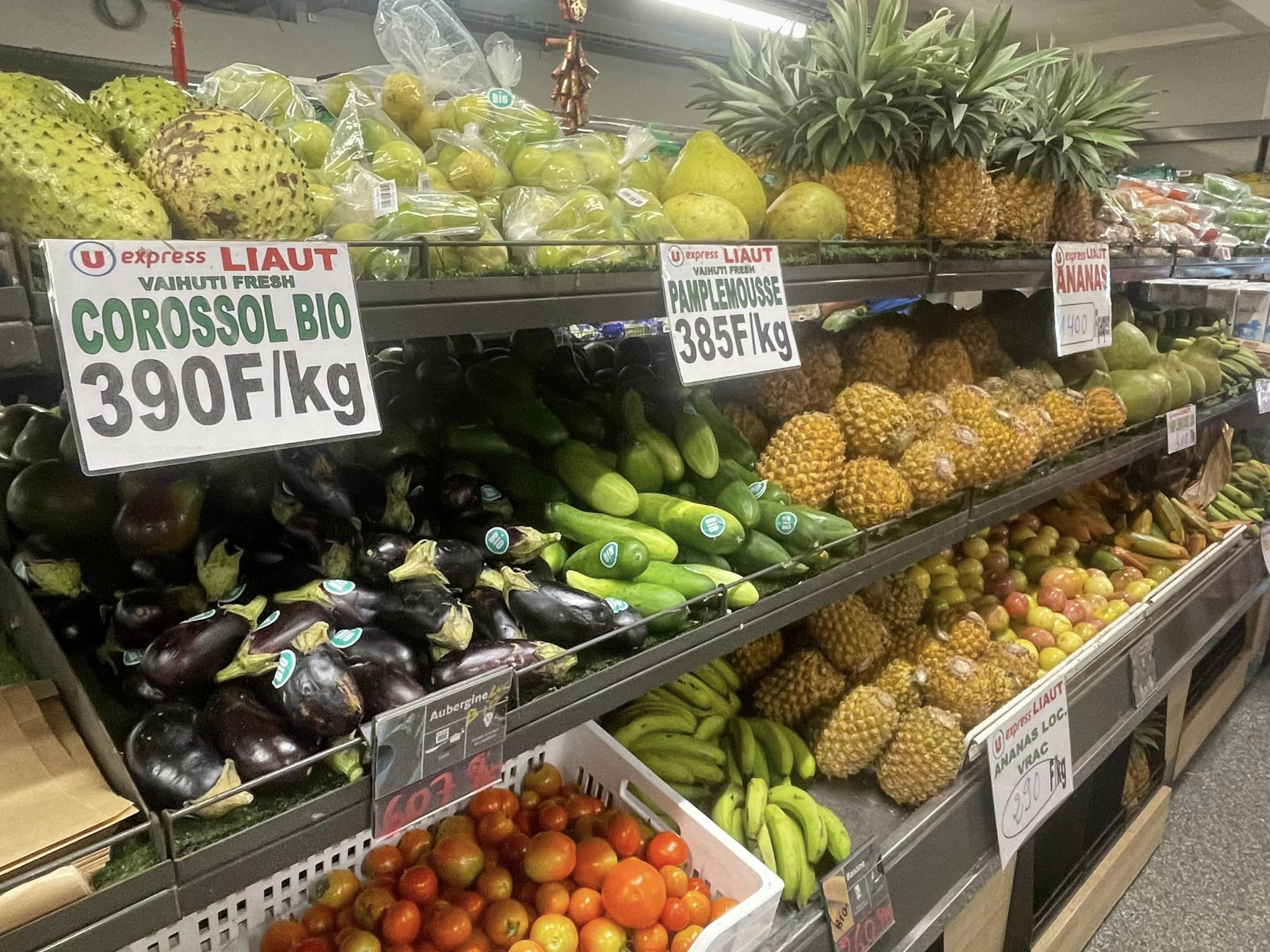 Le rayonnage constitue un enjeu important de la commercialisation des produits bios. (Photo : U express/ Liaut, Raiatea)