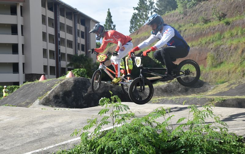 Après une belle première manche, la Coupe de la Polynésie Tahiti Nui de BMX reprenait ses droits sur la piste Fei Pei samedi après-midi. Avec quelques absents en raison de blessures, cette deuxième journée réunissait 26 riders inscrits dans sept catégories. “On a quelques U15 qui se sont blessés, du coup on a réparti les présents sur les autres catégories pour équilibrer les courses. On a un bon effectif aussi chez les 40+ qui sont au complet pour la première fois de l’année, avec tous les clubs représentés : Fei Pi, Pirae et RTT (Riding Team Tahiti). Ça nous permet d’organiser la compétition en plusieurs temps : d’abord des échauffements, puis les essais avec trois manches qualificatives. Il y aura quatre départs selon les niveaux et nous finirons par une finale. On a remarqué, lors de la première manche, que ceux qui ont été en réussite aux Oceania confirment leur forme sur la coupe. On a aussi des retours, donc on est contents du succès de cette compétition”, déclarait Jason Chomfont, responsable de la course et membre du club RTT.