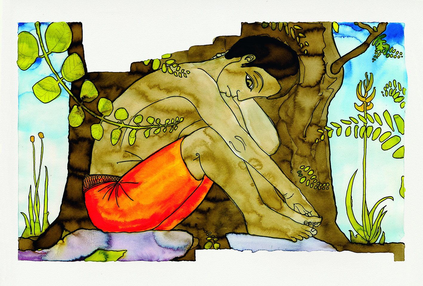 Mais solitaire et contrainte de vivre isolée sur la lune, la déesse décida alors de se transformer en oiseau, un splendide ‘u’upa au plumage d’un vert chatoyant, afin de prendre son envol et de voyager par-delà la voûte céleste. Elle voulait descendre sur terre visiter les hommes et partager leur quotidien, avant que ne tombe la nuit. Au cours de son voyage, elle rencontre un petit garçon qui, comme elle, se morfond de solitude et d’ennui. De cette rencontre naît une amitié fantastique et onirique, où les soirs de pleine lune deviennent des moments de complicité entre Hina et le petit garçon.