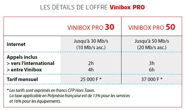 PAPEETE, le 21 avril 2015 - L'Office des Postes et Télécommunication a dévoilé ses nouvelles offres Internet par fibre optique dédiées aux entreprises : les forfaits Vinibox Pro. Elles pourront s'y abonner dès ce mercredi, si leur immeuble est raccordé. Les particuliers, eux, devront attendre septembre 2015.