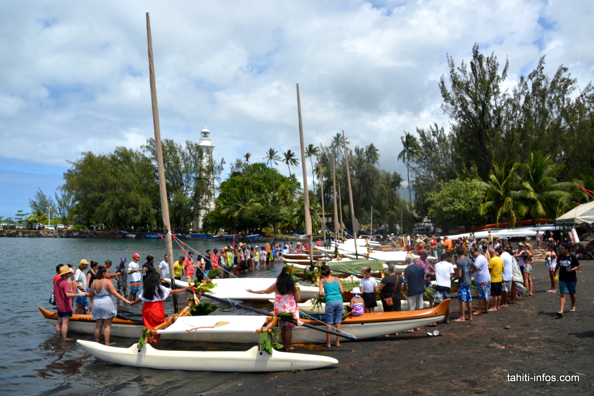Le samedi 16 novembre, un baptême traditionnel était organisé pour les sept pirogues à voile destinées aux start-ups Moana Explorer et O'Sea, l'École de Pirogue à Voile. La plage de la Pointe Vénus a pu assister à une très belle cérémonie. Après que l’apprenti tahu’a (sorcier) Sunny Walker ait invoqué les dieux de l’océan (Ruahatu Tinirau) et de la forêt (Toahiti Matanui), plusieurs centaines de personnes ont entouré les pirogues, se sont échangés des liens végétaux symboliques puis ont "baigné" les va’a pour la première fois dans l’océan.