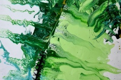 Avant cette demande faite il y a presque deux ans, Pierre Couturat peignait pour lui, sa famille, ses amis. Ses créations circulaient dans un cercle intime et restreint. Il est un adepte du pouring et a pour habitude de ne jamais utiliser de pinceaux. “Sauf pour reprendre certains détails." Le pouring est une technique qui consiste à créer des coulées de peinture de façon aléatoire ou des textures avec des effets d’accumulation de cellules ou d’écailles colorées. Il a repris cette technique pour certains tableaux de sa première exposition.