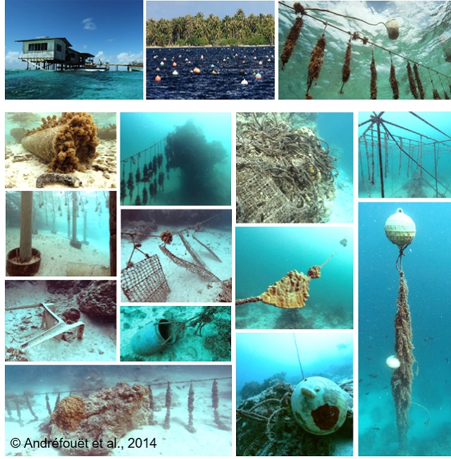 Après la crise du secteur de la perle dans la fin des années 90, de nombreuses fermes perlières ont été abandonnées, laissant derrière elles les vestiges de leur activité au fond des lagons. Ces structures abandonnées, en plus des bâtiments, sont quasi-exclusivement constituées de plastique. Sous l'effet de la chaleur, du soleil, des vagues et du vent, le plastique se dégrade, conduisant à la formation de fragments de plus petites tailles (moins de 5 mm) : on parle de micro- et nanoplastiques. Cette pollution est aggravée par la pollution plastique issue des activités courantes des populations locales (eaux usées émanant des machines à laver, consommation de matières plastiques diverses, etc.) qui finissent dans le lagon, mais également celle apportée par les courants depuis les grands pays pollueurs de la région (Amérique, Asie)...