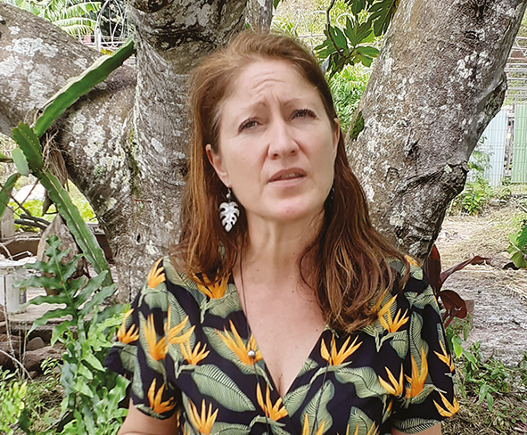“Le centre pénitencier est occupé par huit détenus pour le moment pour 18 places habituellement. Mais en vue des travaux et de la fermeture temporaire du centre, nous avons fait en sorte que les détenus présents ici soient proches de leur fin de peine ou que des aménagements de peine puissent être envisagés. La mise aux normes va permettre au centre d’offrir de meilleures conditions de vie aux personnels et aux détenus. Le début des travaux étant retardé de quelques mois, je suis venue ici pour que le projet de permaculture au sein de la prison puisse se poursuivre. Dans les îles, il est plus difficile de trouver des ateliers mais à Raiatea, nous avons la chance de permettre aux détenus de participer à un atelier sculpture avec Guillaume deux fois par semaine, de suivre un programme scolaire à raison de 6 heures par semaine et de se former avec David à la permaculture 3 heures hebdomadaires. Tous ces ateliers ont pour but d’occuper les détenus tout en leur permettant de préparer au mieux leur sortie car la prison est une sanction, c’est certain mais ce n’est qu’un passage et notre but est de prévenir la récidive et la délinquance. Nous espérons que ces ateliers leur permettent de sortir en étant mieux avec des compétences à mettre à profit. Et à partir du moment où nous avons des projets innovants comme celui d’aujourd’hui, nous travaillons beaucoup avec Mélanie Place, coordinatrice socio-culturelle, pour monter des projets et les financer, surtout dans les prisons éloignées où l’offre n’est pas la même qu’à Tahiti. Il n’y a rien de pire que l’ennui en prison et grâce à ces ateliers, nous pensons pouvoir les aider à mieux préparer leur vie future.”