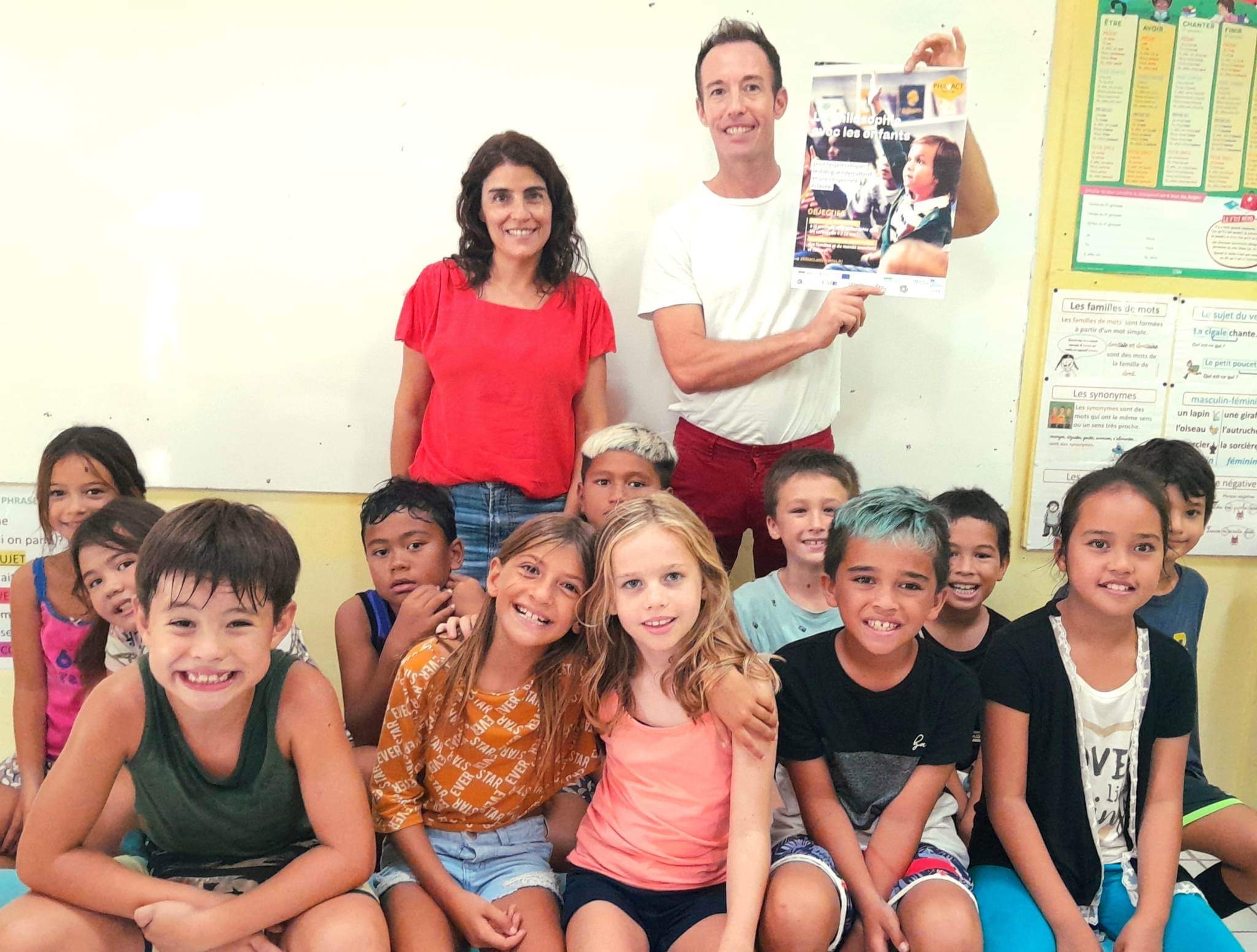 TAHITI, le 22 juin - Ce jeudi Simon Deprez, enseignant en primaire dans l’école de Paopao à Moorea et Héléna Pinna, professeure de philosophie à Tahiti et conceptrice de Goûtez la philo ont mené un atelier philosophique en classe de CE1/CE2 sur le thème du bonheur. L’objectif ? Formaliser la démarche pour la proposer dans d’autres établissements.