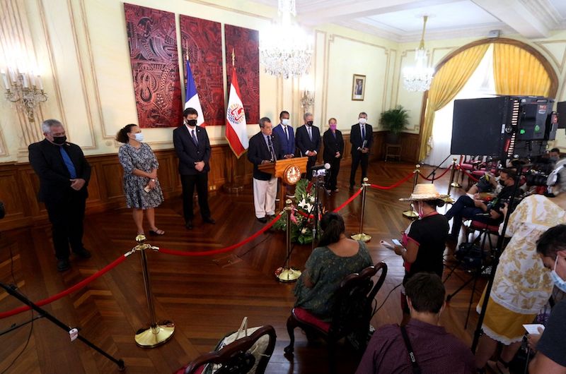 Entouré de l'ensemble de ses ministres, à l'exception d'une Nicole Bouteau démissionnaire et d'un Jacques Raynal “au repos” quelques jours après la crise Covid, le président du Pays Édouard Fritch a présenté mercredi en fin de matinée à la présidence son “remaniement” ministériel a minima.