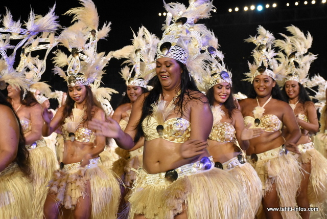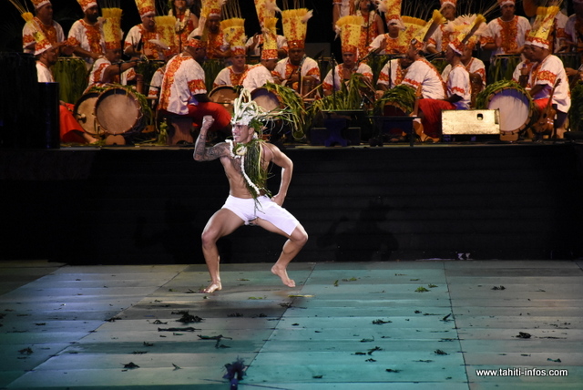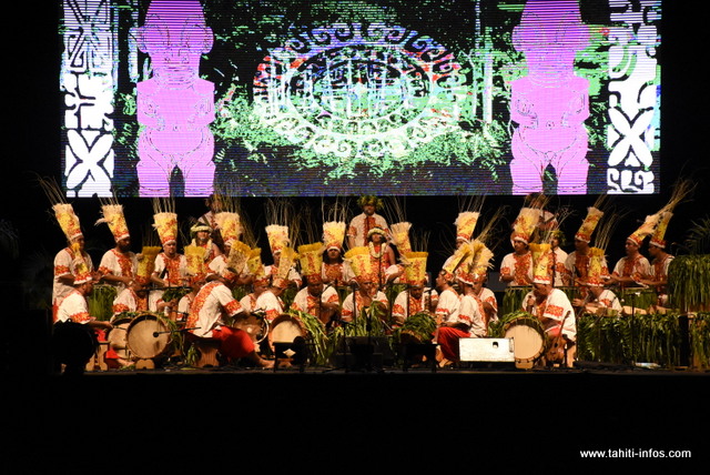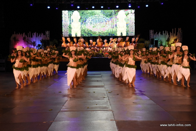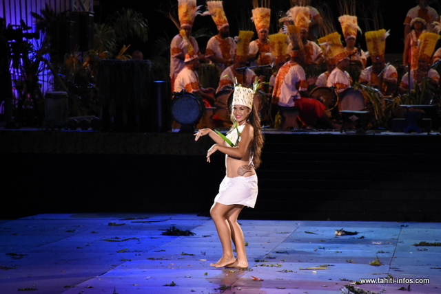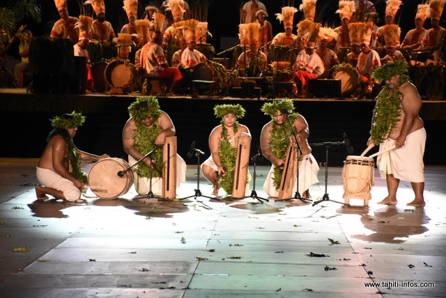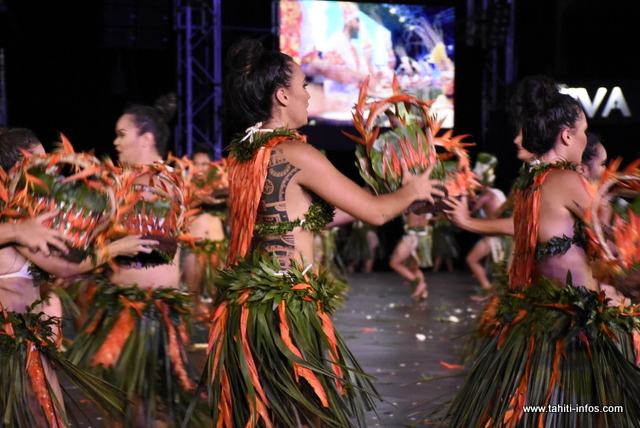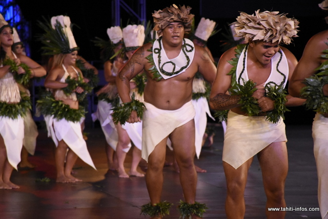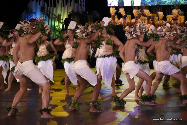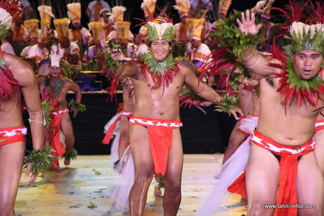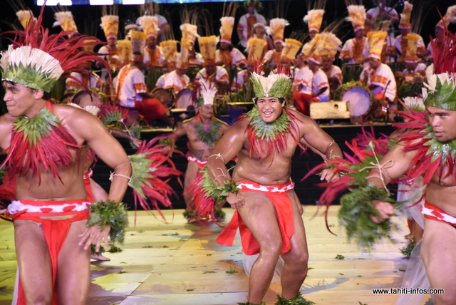 La soirée de vendredi a démarré fort avec "Pupu 'Ori Tamari'i Vaira'o". Le thème que les 160 artistes ont développé sur la scène de To'atā, était "Tiri a faite" (la querelle de la réconciliation).
