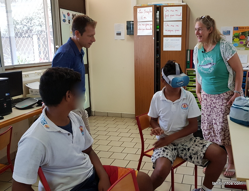 Et à Tahiti aussi la technologie intéresse. Dans une école de Papeete avec des élèves souffrant de troubles psycho-moteurs, la nage avec des dauphins a réussi a apaiser toute une classe qui était de mauvaise humeur. Au CHPF, les jeunes patients ne voulaient même plus ressortir de l'eau…