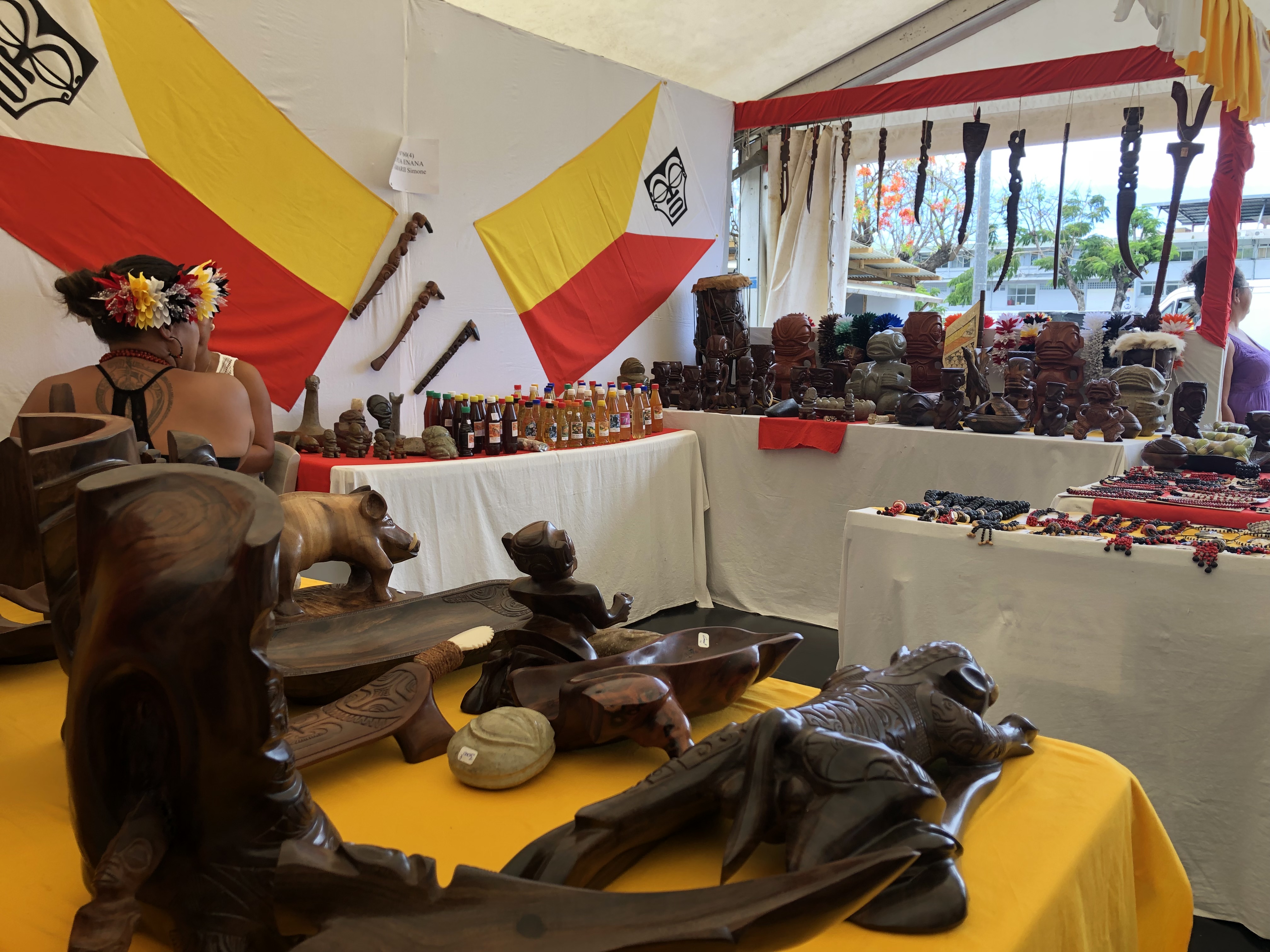 Une vitrine victime de son succès. Certains exposants avaient déjà vendu hier une grande partie de leurs objets. C'est le cas par exemple de Margarette, originaire de Fatu Hiva : "Le salon n'était même pas encore ouvert que les gens, des touristes et des locaux, étaient déjà venus acheter mes tiki en bois. Il me reste une petite dizaine de tiki à vendre." Même situation pour Pierre, un sculpteur de Ua Huka, qui présentait déjà hier un stand dépouillé par les nombreux visiteurs du salon. "A ce rythme je n'aurai plus rien d'ici dimanche, et je rentrerai plus tôt aux Marquises", s'amuse l'artiste.