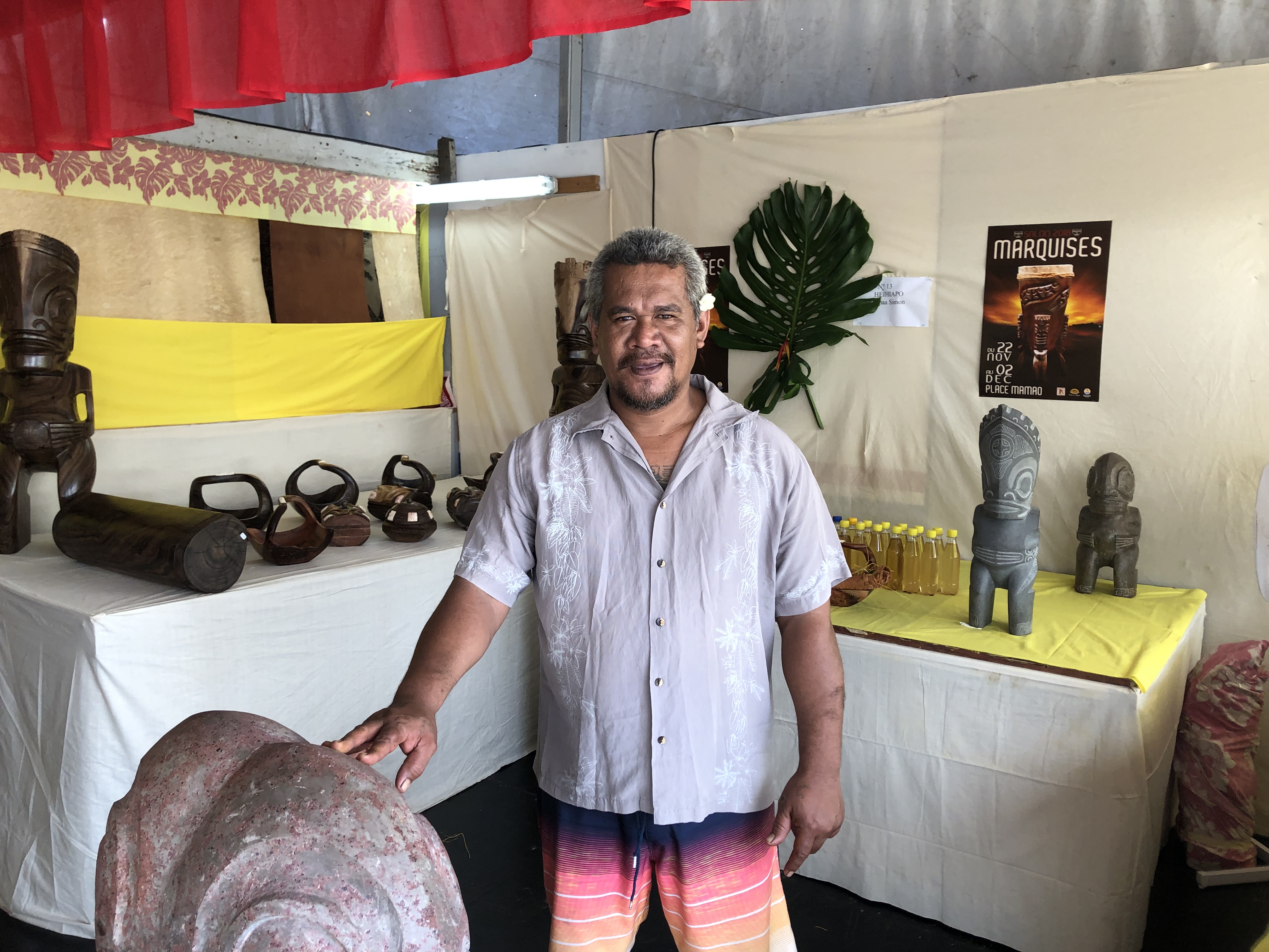 PAPEETE, le 22 novembre 2018 - Le 47ème salon des Marquises a officiellement ouvert ses portes hier du côté du parc expo de Mamao. Sur place plus d'une centaine d'artisans de l'archipel y exposent des tikis, tapas, et autres sculptures en bois ou en pierre. Un savoir traditionnel qui peine à séduire les jeunes générations de la terre des hommes.