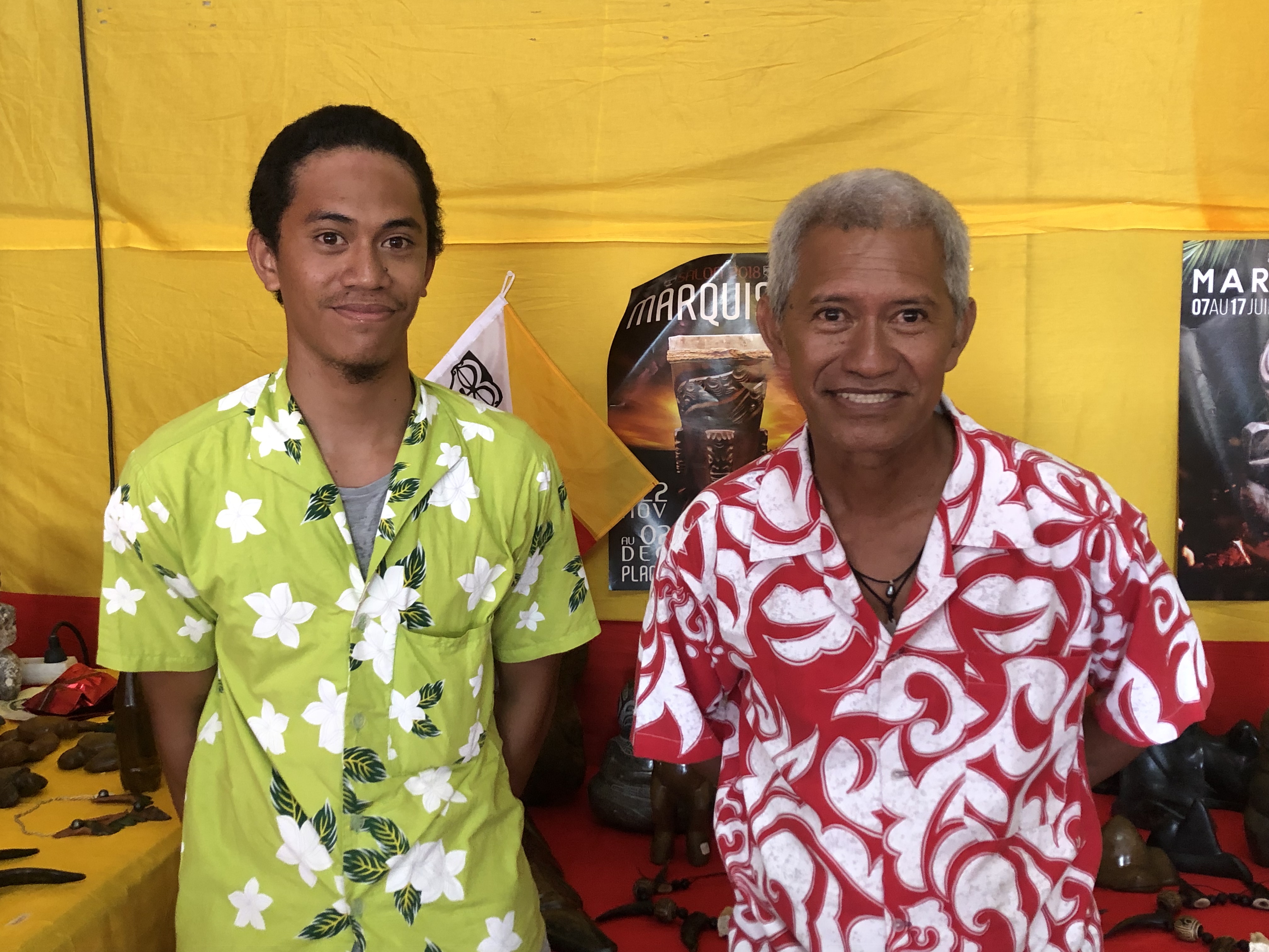 Pour sa part Georges, tailleur de pierre de Ua Pou, a initié son fils aîné, Poetai 22 ans à son art dès son plus jeune âge. "C'est important de transmettre notre savoir à nos enfants pour ne pas que notre culture disparaisse. Je suis fier de lui parce qu'il expose avec moi au salon. Il a encore du travail pour peaufiner sa technique, mais il est sur la bonne voie."