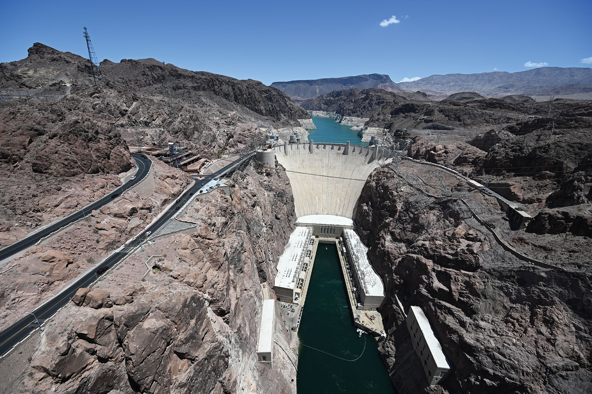 Etats-Unis | AFP | mardi 04/07/2022 - Des millions de litres d'eau charriés par le fleuve Colorado passent chaque jour dans les turbines du barrage Hoover près de Las Vegas, produisant de l'électricité pour des centaines de milliers de foyers américains.
