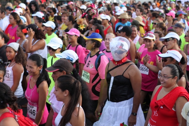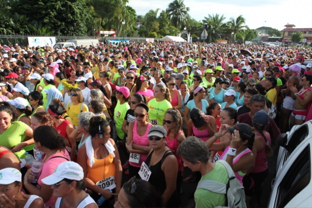 Samedi 9 mars 2013 à Pirae. C’est une véritable marée de femmes qui a envahi Pirae samedi vers 17 heures. La 12ème édition de cette course a été un francs succès et les fonds recueillis à travers des droits d’inscription seront reversés à l’Association Polynésienne de Recherche et de Lutte contre le Cancer et notamment les cancers dits gynécologiques.