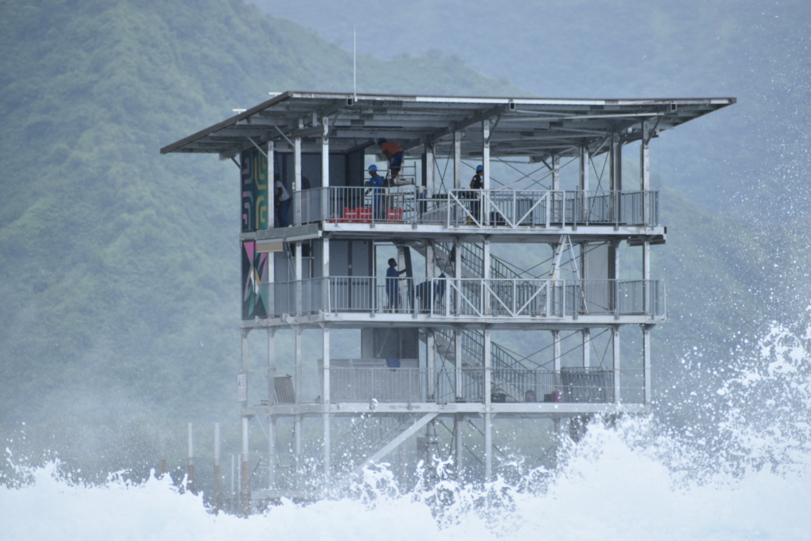 Finalisée fin mars dans le lagon de Teahupo’o, elle fait partie du paysage depuis six mois. Inaugurée lors de la Shiseido Tahiti Pro, en mai, la tour des juges a été pleinement opérationnelle durant les épreuves olympiques de surf de Paris 2024, de fin juillet à début août.