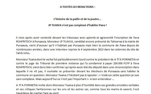 TAHITI-INFOS est un site édité par FENUACOMMUNICATION Sarl au capital de 20 000 000 Fcfp, immeuble Manarava - Shell RDO Faa'a - BP 40160 98 713 Papeete Polynésie Française.