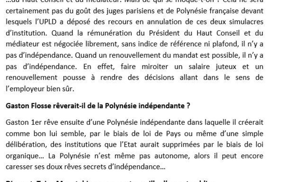 L’opposition indépendantiste a cru bon tirer son bilan des 100 jours du gouvernement de Gaston Flosse lors d’une conférence de presse. Une fois de...