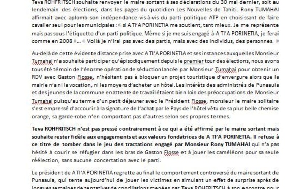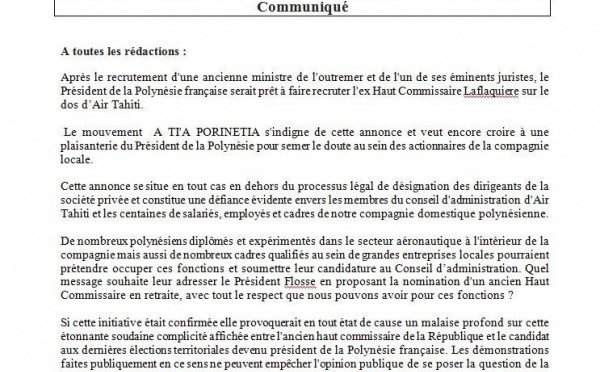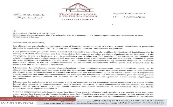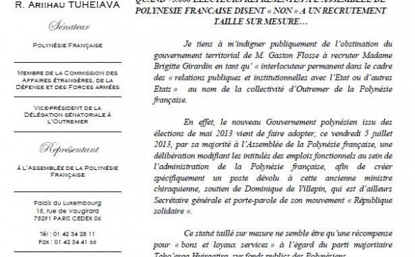 Le sénateur Richard Tuheiava a transmis un courrier à l'ensemble des médias, locaux,métropolitains, et régionaux, portant sur la prochaine mesure de...