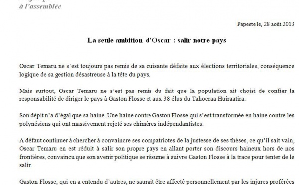 Gaston Flosse élu à « l’unanimité » Président du Polynesian Leaders Group, dont Oscar Manutahi Temaru est l’un des huit membres fondateurs … Et c’est...