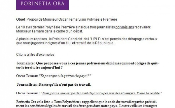 Premier tour : voter l’Histoire Chers concitoyens, Ia Ora Na ! Nous écrivons au jour le jour l’Histoire de notre Pays, le Fenua, la Polynésie...