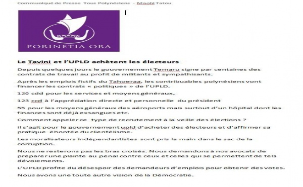Avec moins de 1% des voix, le RRPP n’a pas su convaincre nos populations d’aller vers la seule alternative possible pour lancer notre Polynésie dans...