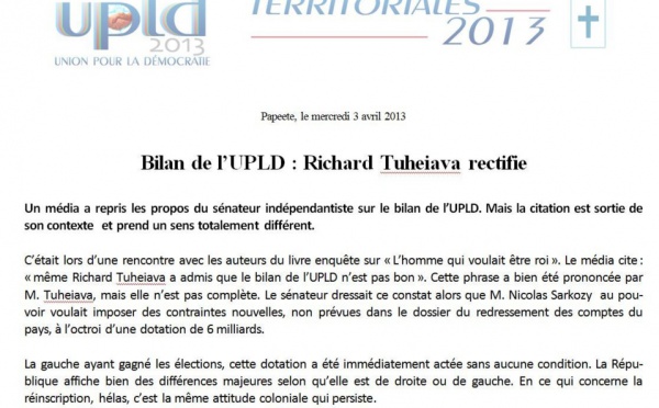 Aujourd’hui à 10h, à la permanence de campagne de l’UPLD, son président Oscar Manutahi TEMARU , accompagné de Richard Tuheiava (leader section 1) et...