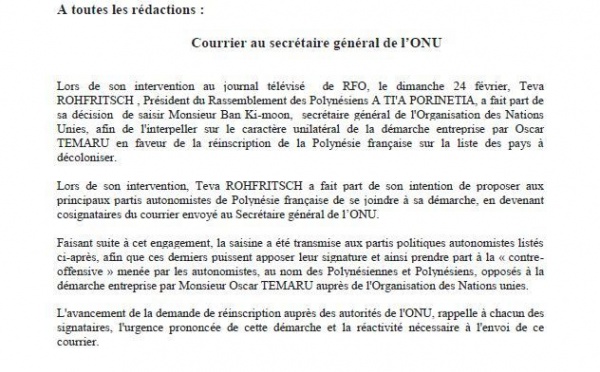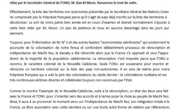 Le Tahoeraa revient sur l'intervention télévisée de Teva Rohfritsch dimanche soir sur le plateau de Polynésie 1ère: "Lors de son intervention...