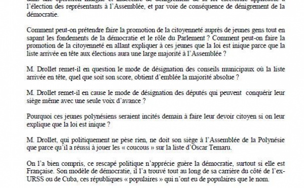 Teva Rohfritsch veut avoir le dernier mot en répondant au communiqué du Tahoeraa. Grand bien lui en fasse s’il s’est senti affecté dans son ego. Le...