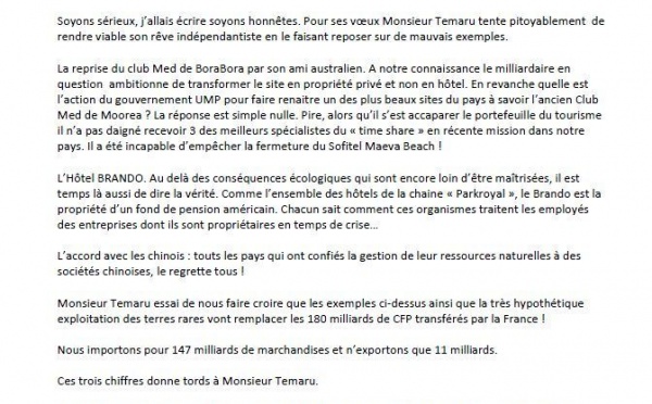 Teiva Manutahi pour Poinetia Ora présente ses voeux sous forme d'un communiqué de presse intitulé" Voyages illégaux"