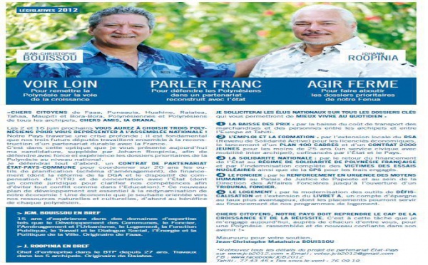 Franck Levaudy, directeur de campagne de Jean-Christophe Bouissou, présente le programme du candidat: "Ia Ora Na à vous toutes et à vous tous ! Cette...