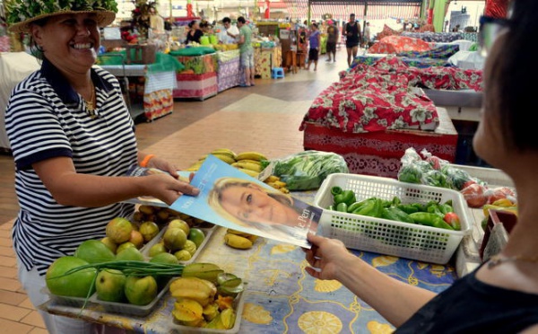 Un groupe de militants Front National a organisé une opération de communication, mardi 17 avril au marché de Papeete, pour sensibiliser commerçants...
