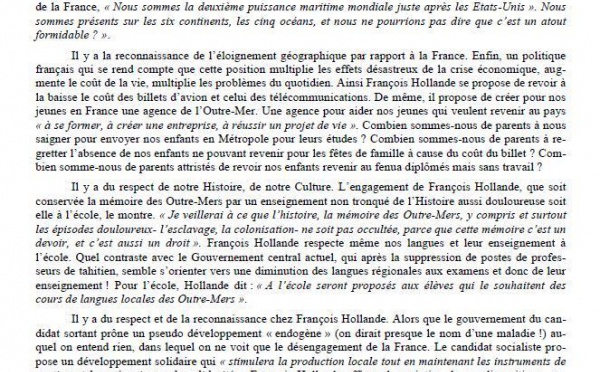 Deux mots résument le discours du 10 mars de François Hollande. Deux mots résument les engagements pour l’Outre-Mer de François Hollande. « Respect...