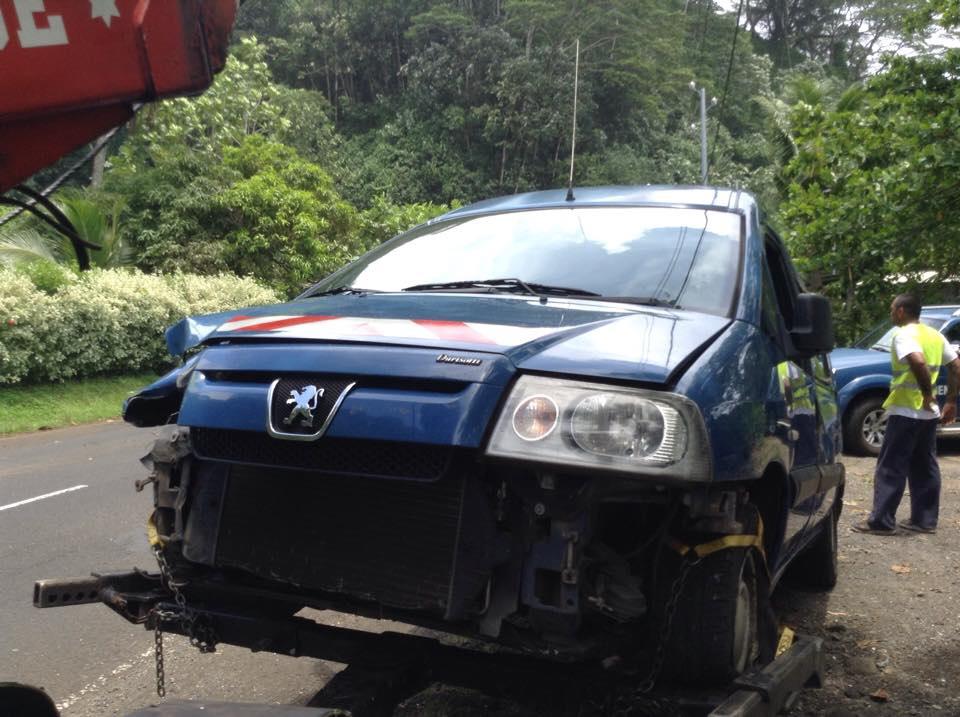 Lundi, une femme gendarme en service conduisait au niveau du PK 22 à Tiarei, sur la côte Est de Tahiti quand un chien a déboulé sur la route.