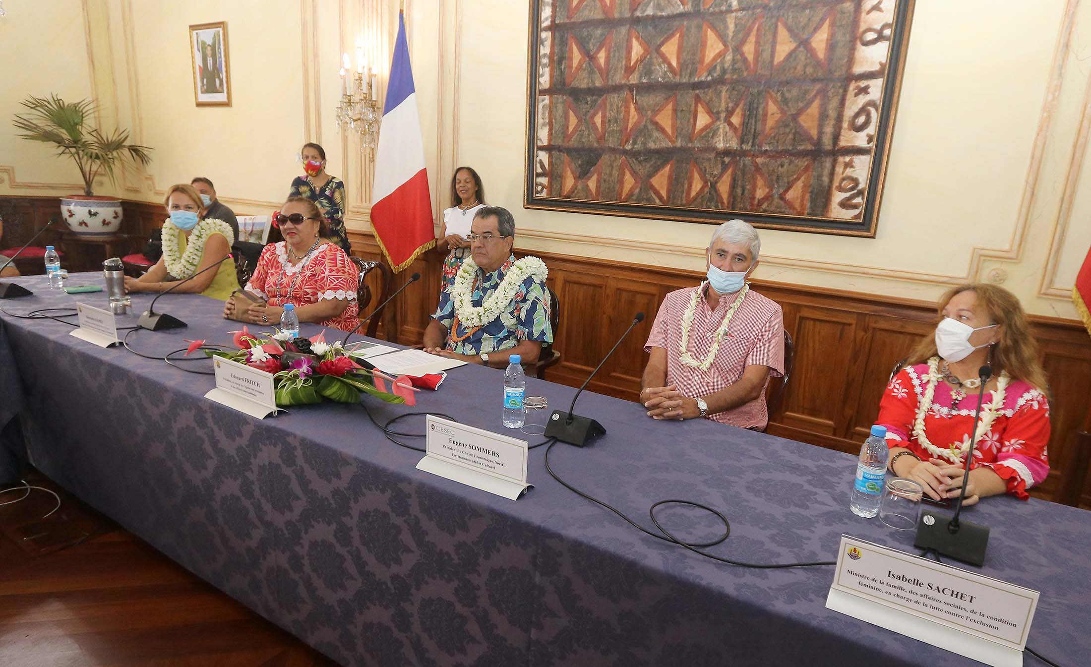 Tahiti, le 26 avril 2021 - Henriette Kamia a présenté lundi matin le nouveau site internet de la fédération Te Niu O te Huma visant à faciliter la vie quotidienne des personnes en situation de handicap. Accompagnée du président Édouard Fritch, la présidente de la fédération a détaillé les services disponibles et les objectifs à terme du site internet pour les personnes handicapés.