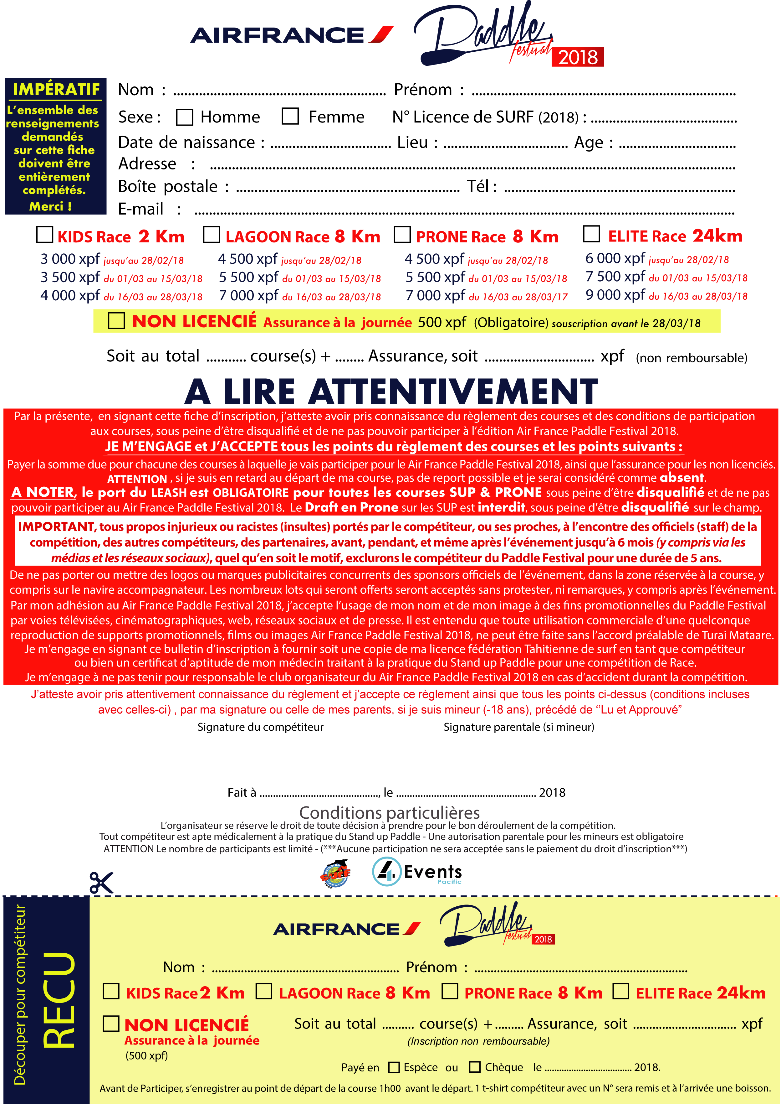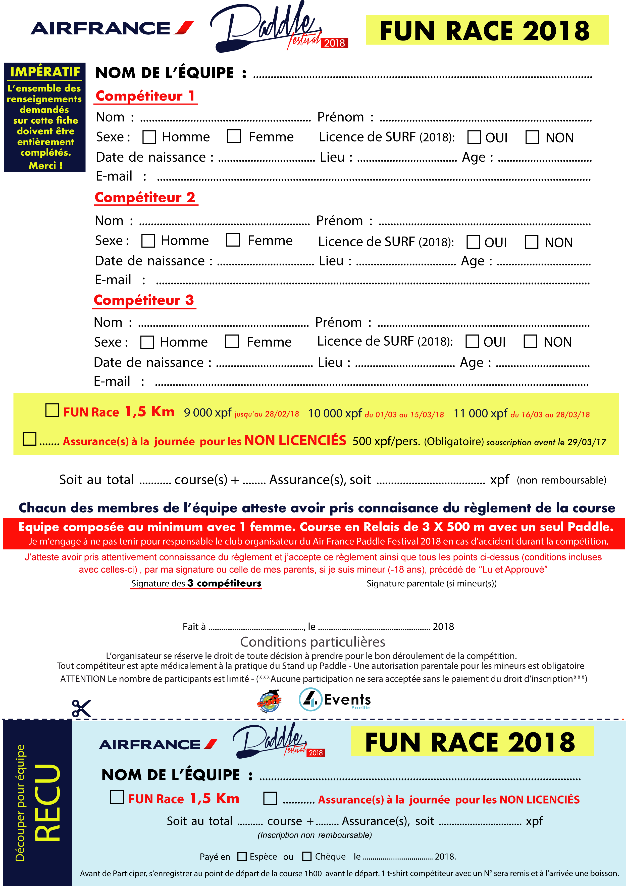 POUR LES LICENCIÉS : Copie de la Licence de SURF 2018 est exigée