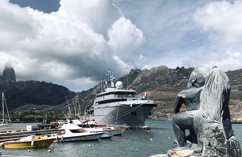 Ua Pou, le 17 janvier 2023 - Après des escales à Fakarava et Hao, c’est aux îles Marquises que le Bougainville, navire de la Marine française, a jeté l’ancre dimanche matin, pour une escale de trois jours à Ua Pou.