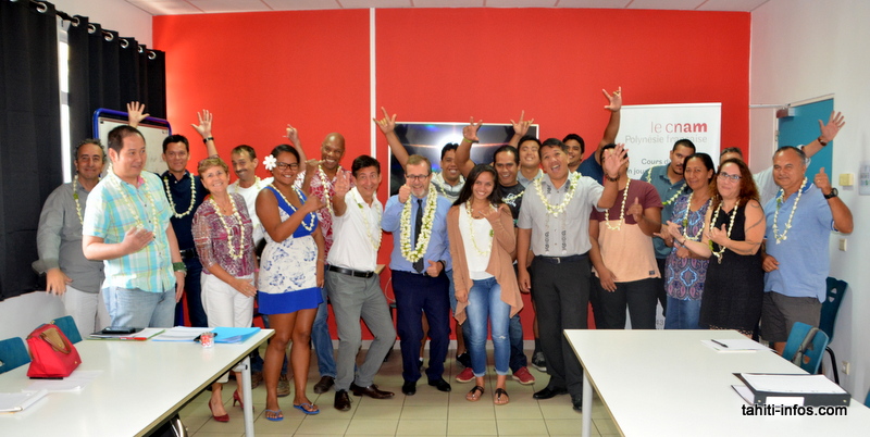 Le Cnam en Polynésie fête ses 40 ans cette semaine. 400 Polynésiens y ont été formés l'année dernière. (En photo, les auditeurs et formateurs de la formation "Conducteur de travaux" inaugurée ce lundi avec l'équipe du Cnam)