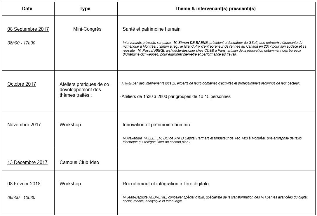 L’expérience du Congrès ne s'arrête pas au 09 juin à 17h00 ! Comme toute action de développement, le Congrès est un point de départ pour perfectionner continuellement ses compétences. C'est l'objet de Club-Ideo, créée à la demande des participants du Congrès 2015, d'y répondre.
