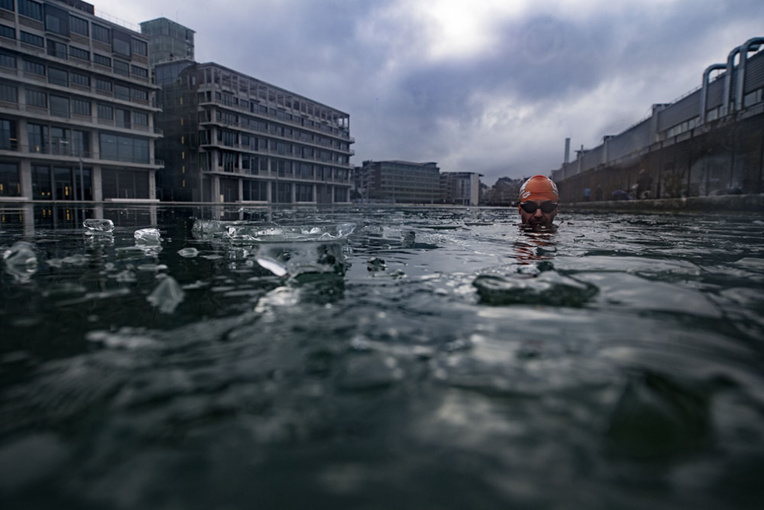 Voyer s'entraîne régulièrement depuis 2 ans pour des courses en eau froide (appelées 'ice swimming'). Mais pas facile de trouver des plans d'eau avec une eau en dessous de 5 degrés à Paris. Alors, il a choisi de se jeter l'hiver dans l'eau des canaux.