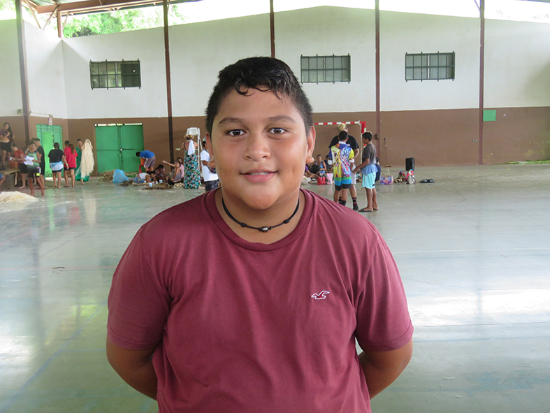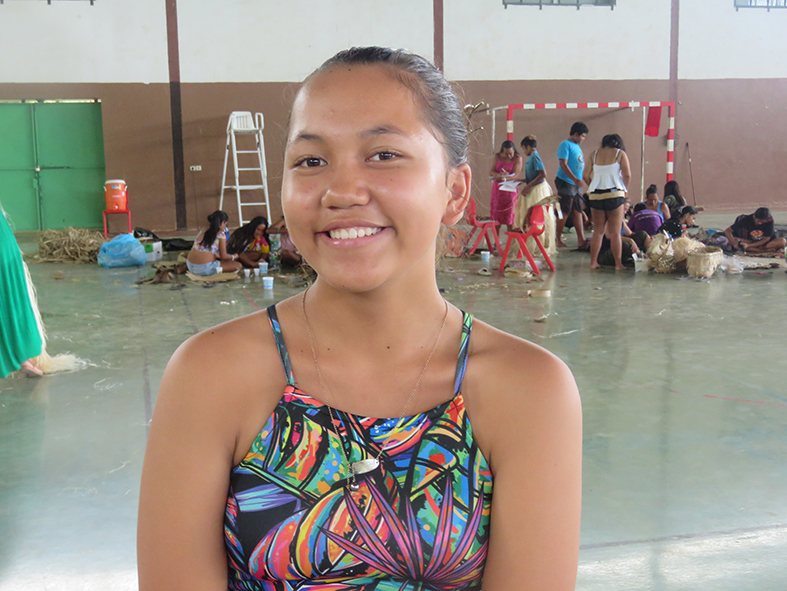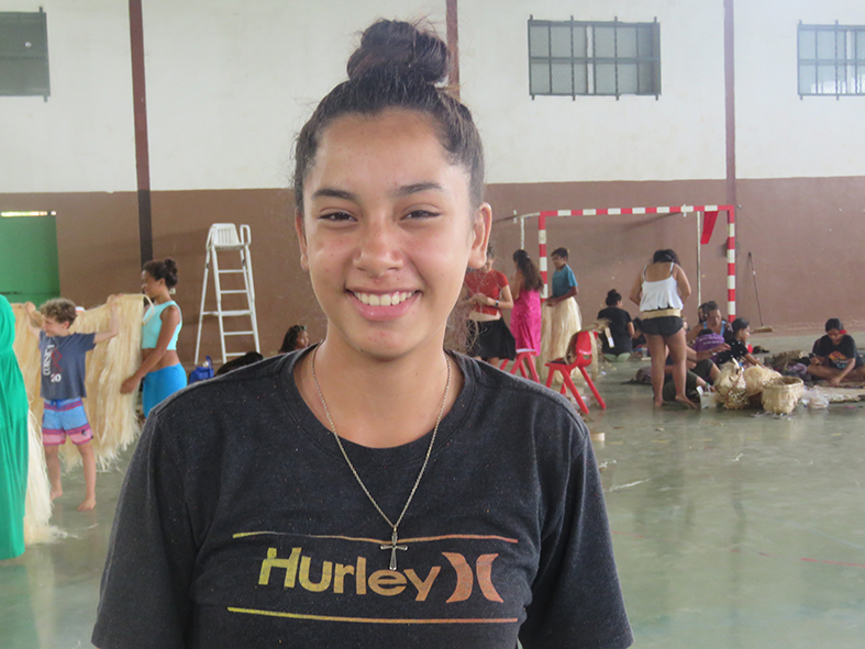 “On m’a confié le rôle de ra’atira parce que j’ai du caractère et les filles m’écoutent plutôt bien. Mon rôle dans le groupe consiste surtout à recadrer les filles quand quelque chose ne va pas ou quand elles commencent à trop jouer. Je fais aussi en sorte qu’elles s’impliquent dans leurs gestes. Je pratique le ‘ori tahiti depuis quelques mois dans une école de danse à Ha’apiti. Dans l’ensemble, les filles n’ont pas vraiment fait de danse auparavant. Je leur donne par exemple des conseils sur les pas. Les recrutements ont été faits par nos intervenants culturels. Notre thème de cette année est Taumata-fee-faatupu-hau qui est la pieuvre d’Opunohu. Je suis très heureuse et très fière de participer à ce projet pour le Heiva Taure’a. Et j’espère vraiment que nous allons gagner au moins quelque chose et pourquoi pas le premier prix. Les répétitions sont parfois dures parce que les danseurs peuvent ressentir de la fatigue. Les musiciens aussi sont vraiment fatigués. C’est très physique.”