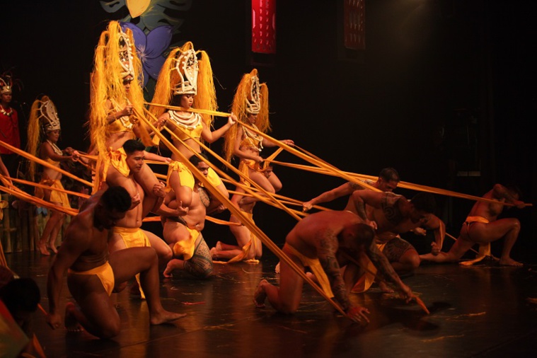 La troupe Poti’i no Vinivini était le dernier groupe de la soirée à se présenter en mehura pour raconter l’histoire de l’entreprise ViniVini et de son fondateur, sur le thème de la pêche – tautai. L’histoire retrace la mise en œuvre d’une technique de pêche révolutionnaire par monsieur Vinivini, précurseur de la pêche durable et écologique dite “long line”.