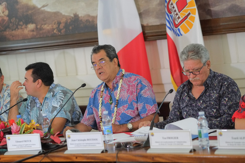 Édouard Fritch et la quasi-totalité du gouvernement étaient réunis, vendredi matin, à la présidence, en face de plusieurs chefs d'entreprises du secteur du bâtiment et des travaux publics (BTP) et des médias, pour présenter le premier volet du "plan de relance" pour la Polynésie française. Plus exactement, c'est une sorte d'étape intermédiaire entre les premières "mesures d'urgence" débloquées pendant la crise et le véritable plan de relance "en cours de finalisation" et qui "sera présenté dans le courant du mois d'août", dixit Édouard Fritch, qui a été présentée vendredi. Une étape d'accélération de la commande publique "déjà inscrite dans le budget 2020", consistant à faire du BTP le "moteur de la relance à court terme".