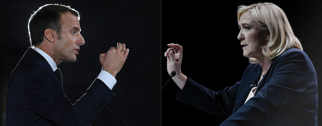 Vernon, France | AFP | mardi 12/04/2022 - Emmanuel Macron et Marine Le Pen se sont écharpés mardi sur la possibilité de modifier la Constitution sans passer par le Parlement, ce que la candidate d'extrême droite assure pouvoir faire, le président sortant appelant à "respecter" le texte suprême.