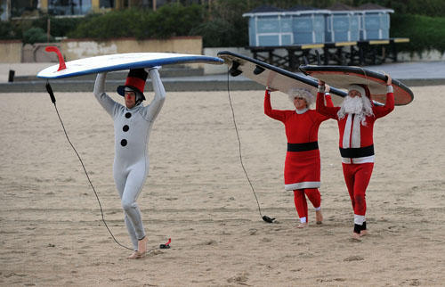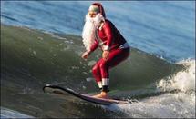 LOS ANGELES, 24 décembre 2011 (AFP) - Avant de s'installer dans son traîneau pour sa longue distribution de cadeaux aux enfants du monde, le Père Noël s'est offert quelques heures de répit en surfant samedi sur les vagues du Pacifique, à quelques encablures de Los Angeles.