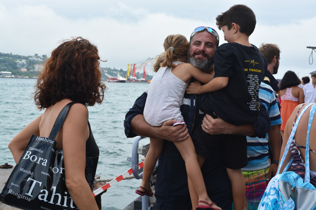 Ce samedi après-midi sur la base navale, même si le temps faisait grise mine, l’ambiance était à la fête. Après trois mois de séparation, les familles, les couples se retrouvent sur le quai et tous se laissent déborder par l’émotion. Embrassades, retrouvailles : les enfants étaient certainement les plus impatients de retrouver "papa" après de longs mois d’absence. Fête des pères oblige, certains avaient même déployé sur le quai une grande banderole "A notre papa chéri" pour que le message puisse être découvert par les hommes depuis le navire avant même qu’ils ne soient descendus à terre. Les marins du Prairial vont pouvoir goûter aux joies de la vie de famille pendant quelques mois au port d’attache de la frégate. Le prochain départ est prévu, pour une mission plus courte, au cours du dernier trimestre de l’année 2015, mais la zone de surveillance n’a pas encore été définie.