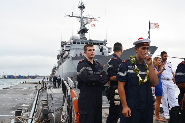 PAPEETE, le 20 juin 2015. Bien avant que la frégate n’ait pointé son nez dans le port de Papeete et n’ait pu accoster à la base navale, quelques dizaines de personnes étaient rassemblées sur le quai. Familles, conjoints, amis, tous n’avaient qu’une hâte : retrouver leur marin préféré de retour sur la terre ferme du fenua après une mission de 80 jours en mer. Chaque année, le Prairial, cette frégate de surveillance de la marine nationale sillonne une partie du Pacifique se partageant l’immensité des eaux françaises dans cet océan avec un autre bâtiment militaire basé à Nouméa. Cette longue mission avait des objectifs multiples notamment la surveillance de la ZEE (zone économique exclusive) de la Polynésie française mais aussi de l’île de Clipperton, cet atoll corallien, situé aux confins du Pacifique et un millier de kilomètres des côtes du Mexique.