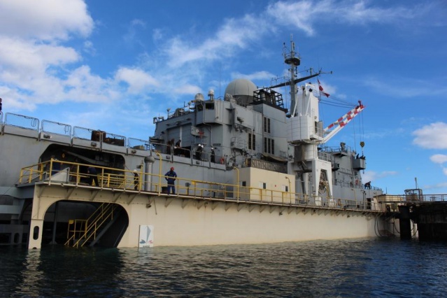 Ce mercredi matin le Prairial effectue des mouvements dans la rade de Papeete. L'équipage est à bord, mais il ne manœuvre pas. Le bâtiment est en poids mort, il ne peut plus se déplacer de lui-même. Il va entrer au dock, préalablement immergé pour l'opération. "À l'avant se trouve un bateau pousseur", décrit le commandant Joffrey Guerry en pointant son doigt vers un petit bateau fixé au Prairial. "Ce bateau pousseur tient le nez pour s'assurer que la frégate se mette dans l'axe. À L'arrière il y a un remorqueur."